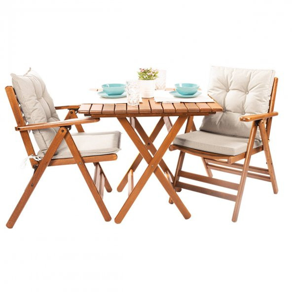 Antalya Katlanır Ahşap Bahçe Balkon Takımı: 70lik Masa + 2 Minderli Sandalye