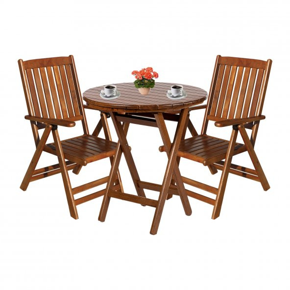 Didim Ahşap Bahçe Balkon Takımı: 70lik Yuvarlak Masa + 2 Sandalye Katlanır Set
