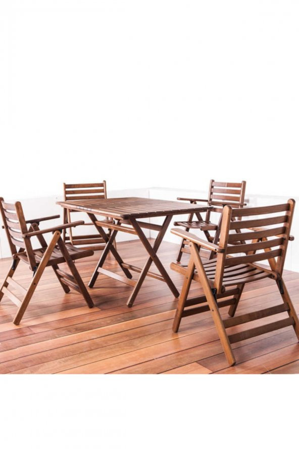 Antalya Ahşap Bahçe Balkon Takımı: 80x120 Sabit Ayaklı Masa + 4 Katlanır Sandalye Set