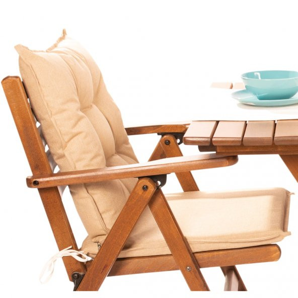 Atina Lüx Katlanabilir Ahşap Bahçe Balkon Sandalyesi - Minder Oturum ve Sırtlık
