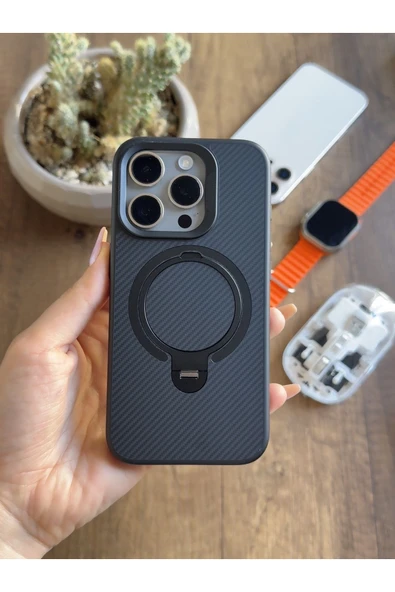 MTL iPhone 15 Pro Uyumlu Karbon Desenli Standlı Ve MagSafe Uyumlu Kılıf SooCase700