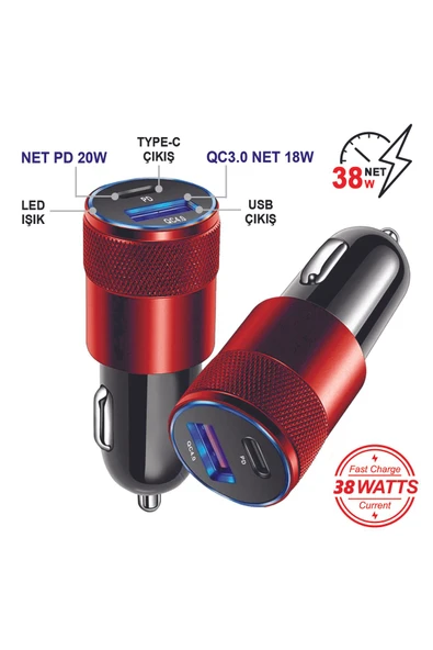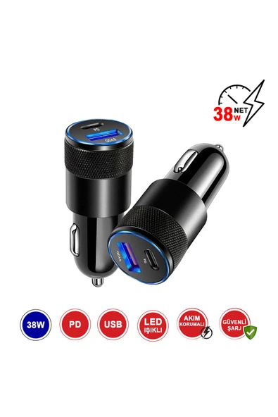 MTL 38W PD+USB Çift Portlu Qualcomm QC 4.0 Hızlı Araç Şarj Cihazı MT-A1835
