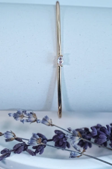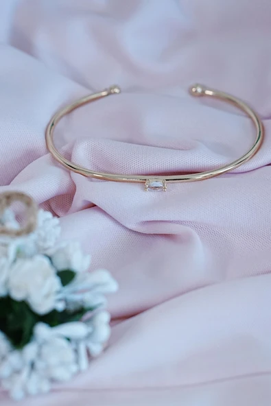 Gold Renk Kelepçe Model Zirkon Taşlı Çelik Bileklik Kaliteli