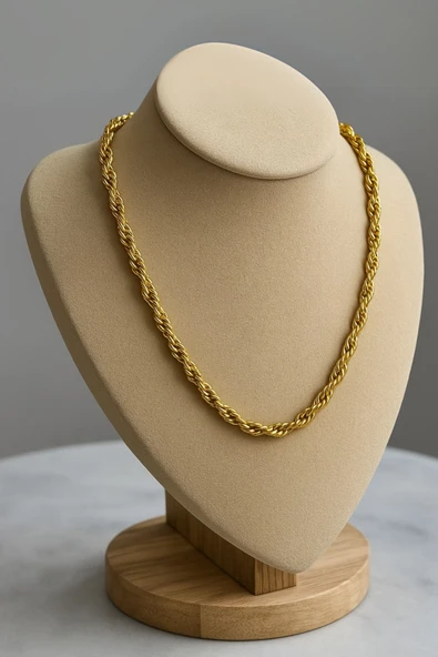 5mm Kalın Burgu Altın Renk Çelik Kolye Unisex Paslanmaz Kaliteli