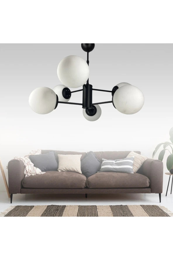 Mutu Ticaret Rima Siyah 6'lı Beyaz Camlı Avize | Kaliteli Modern Metal Avize