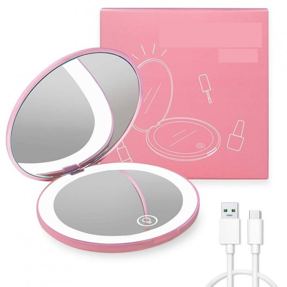 Taşınabilir Mini Led Makyaj Aynası Güzellik Aynası Şarjlı Işıklı Çanta Tipi Yuvarlak Makyaj Aynası