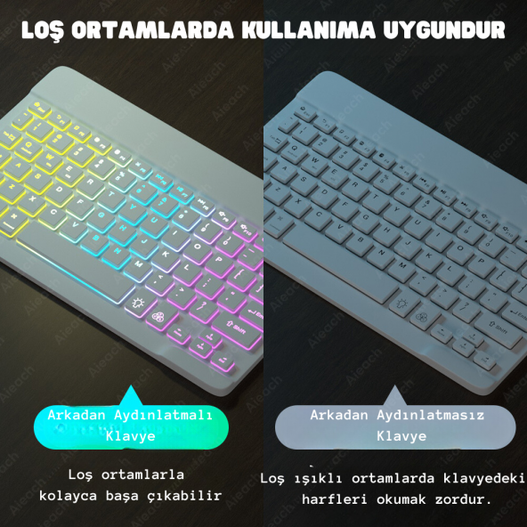 YeniTech- Bluetooth Aydınlatmalı Klavye Mouse Tablet Telefon Android iOS Windows Fare Klavye iPad