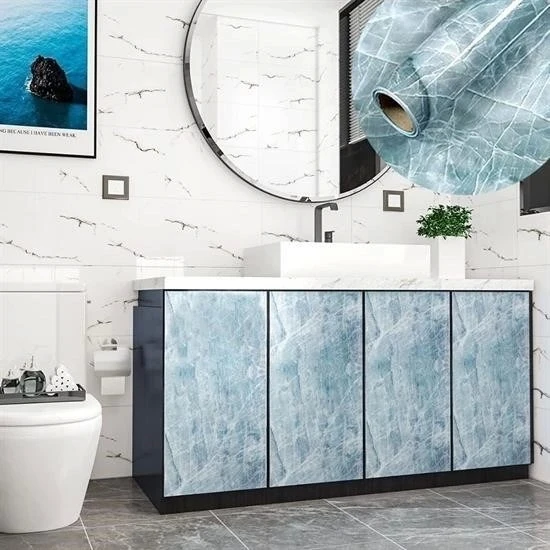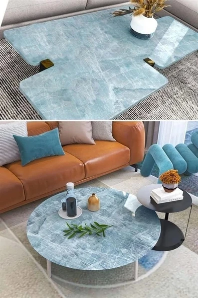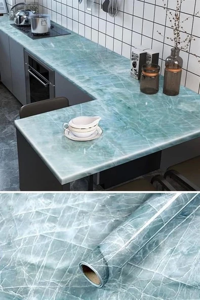 BUFFER® Mermer Desenli Masa Tezgah Mutfak Su Geçirmez Yapışkanlı Folyo Sticker Mavi 5x0,6m
