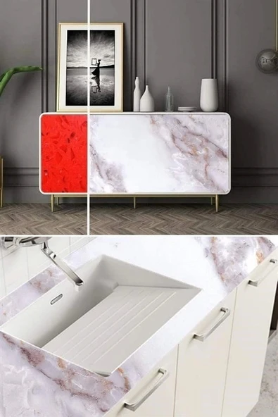 BUFFER® Mermer Desenli Masa Tezgah Mutfak Su Geçirmez Yapışkanlı Folyo Sticker Sarı 5x0,6m