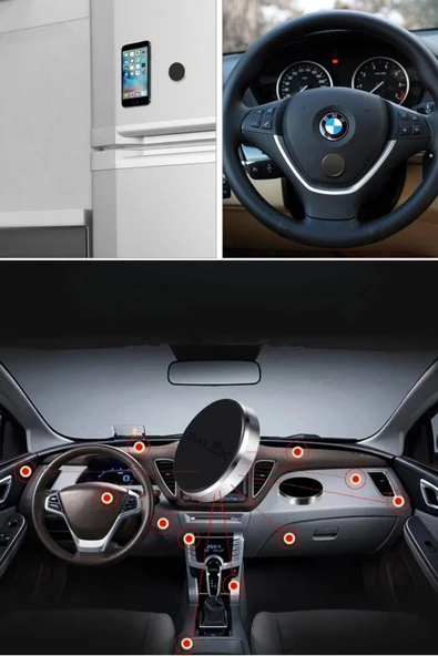 BUFFER® Tüm Modellerle Uyumlu Manyetik Araç İçi Telefon Tutucu Çok Amaçlı Güçlü Mıknatıs Tutucu