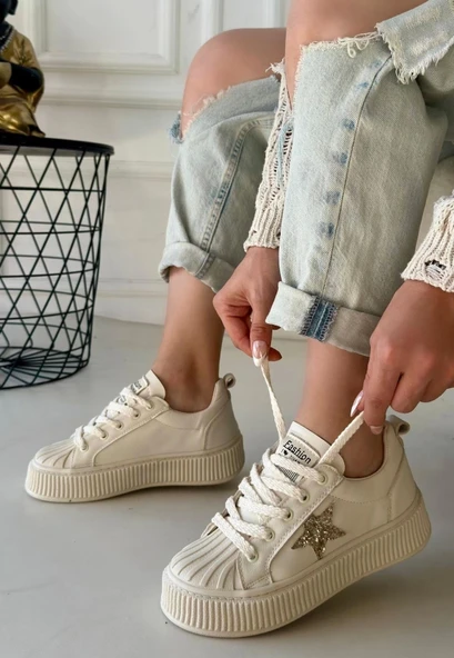 Piata Bej Cilt Bej Tabanlı Bağcıklı Spor Ayakkabı