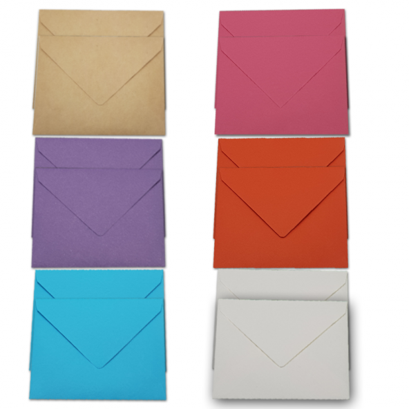 12 Adet 7 x 9 Renkli Mini Zarf 6 Renk