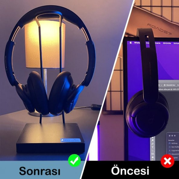 Mat Siyah Kaymaz Siyah Tabanlı Askı Aparatlı Stant Kulaküstü Gaming Oyuncu Kulaklık Tutucu Standı