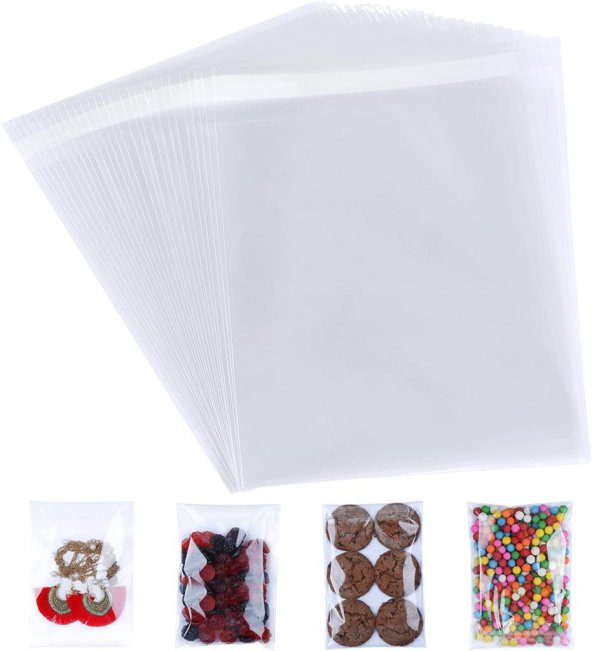 100 Adet 8x15 Kendinden Yapışkanlı Açılıp Kapanabilir Şeker Kurabiye Şeffaf Plastik Poşet Torba