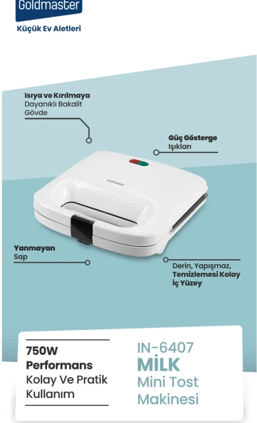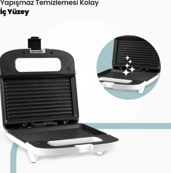 Milk 750W Isınmaya Dayanıklı Tost ve Izgara Makinesi Beyaz