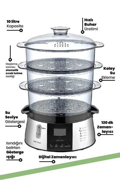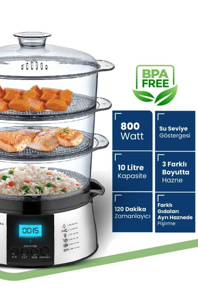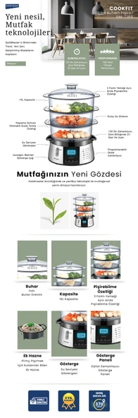 GOLDMASTER COOKFİT DİJİTAL EKRANLI 120 DK ZAMAN AYARLI 10 LİTRE DİJİTAL BUHARLI PİŞİRİCİ