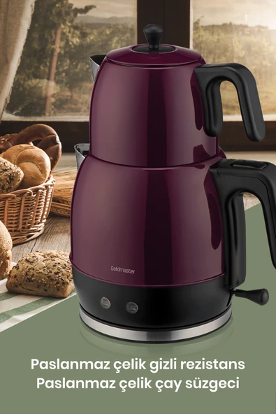 GOLDMASTER BORA 2200 WATT XL DAMLATMAYAN AĞIZ TASARIMLI PASLANMAZ ÇELİK ÇAY MAKİNESİ VE SU ISITICISI