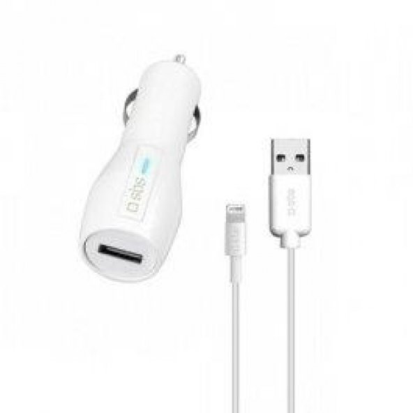 SBS 02483 ARAÇ ŞARJ CİHAZI + LİGHTNİNG APPLE ŞARJ VE VERİ KABLOSU BEYAZ