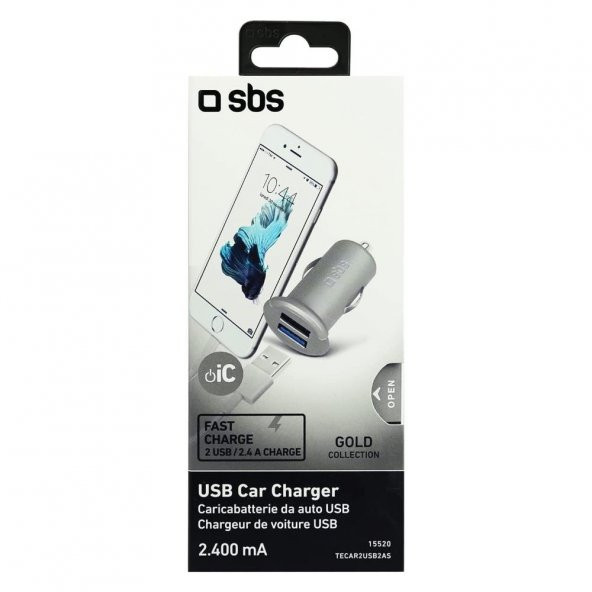 SBS 15520 TECAR2USB2AS 5 W ÇİFT USB ÇIKIŞLI ÇAKMAKLIĞA TAKILAN ARAÇ ŞARJ CİHAZI GRİ