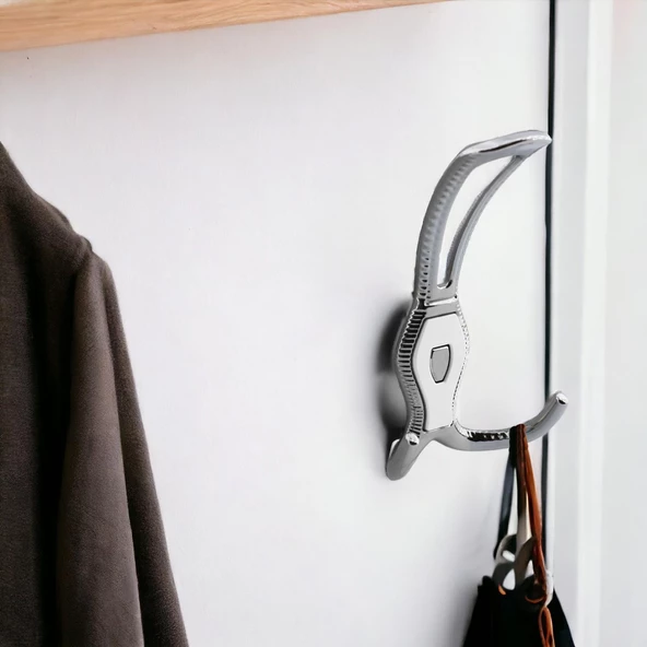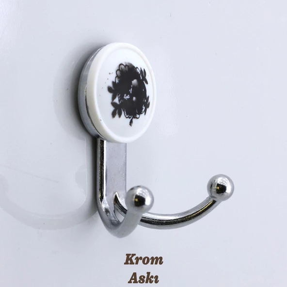 Mobilya Portmanto Vestiyer Duvar Askısı Metal Dolap Elbise Askılığı Krom Beyaz Desenli