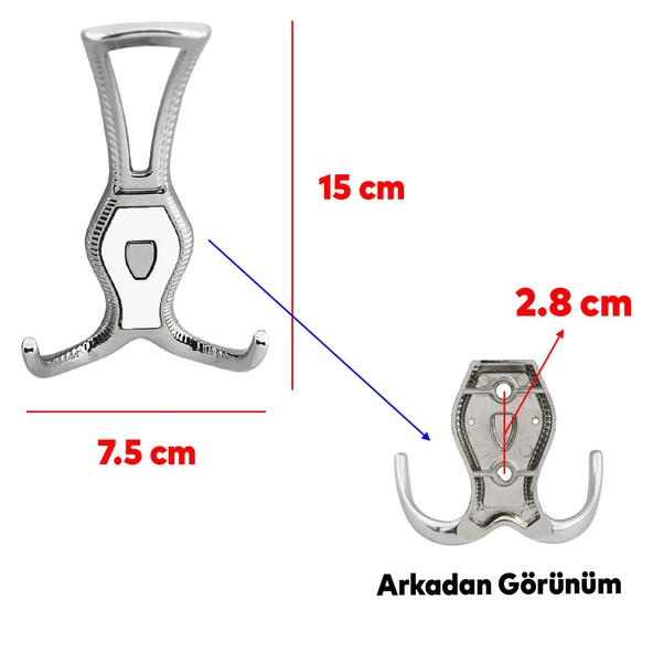 Metal Askı Vestiyer Duvar Dolap Elbise Askısı Krom Renk Mobilya Kapı Askılığı Aparatı 5 Adet
