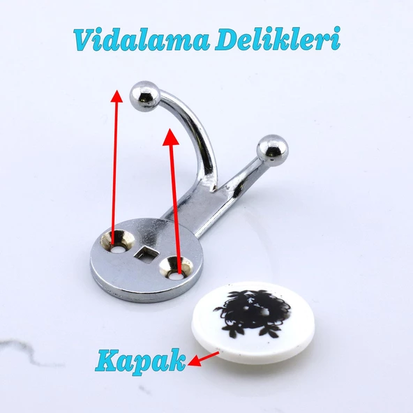 Vestiyer Mobilya Duvar Askısı Metal Dolap Elbise Askılığı Krom Renk Askı Beyaz Kapaklı