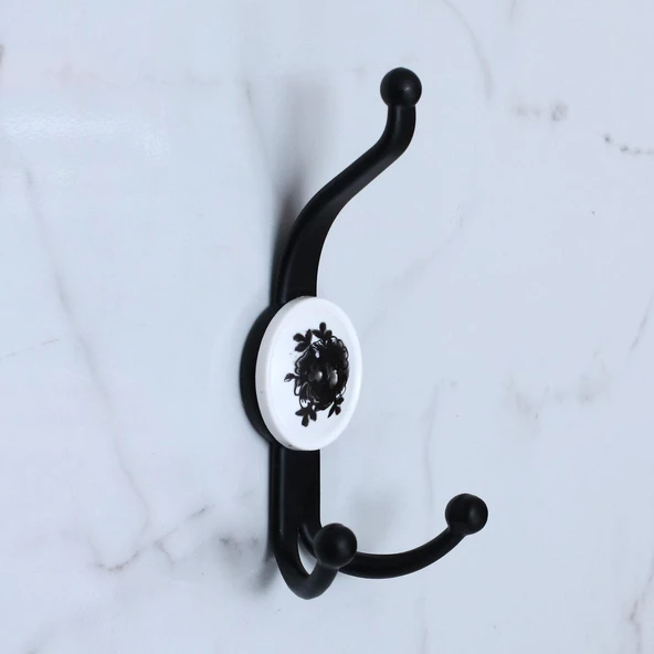Metal Sağlam Banyo Lavabo 2li Askılık Aparat Bornoz Havlu Asma Askı Vidalı Siyah Renk