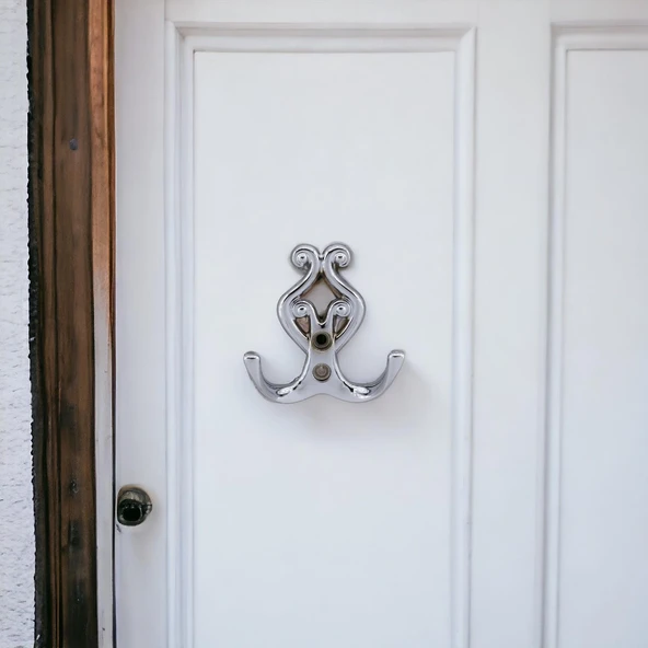 Mobilya Portmanto Vestiyer Duvar Askısı Metal Dolap Elbise Askılığı Krom Beyaz Desenli (4 Adet)
