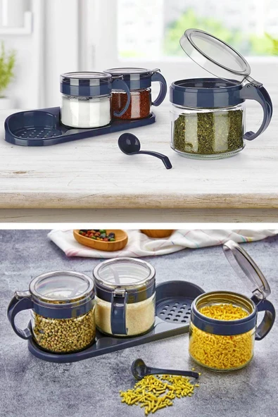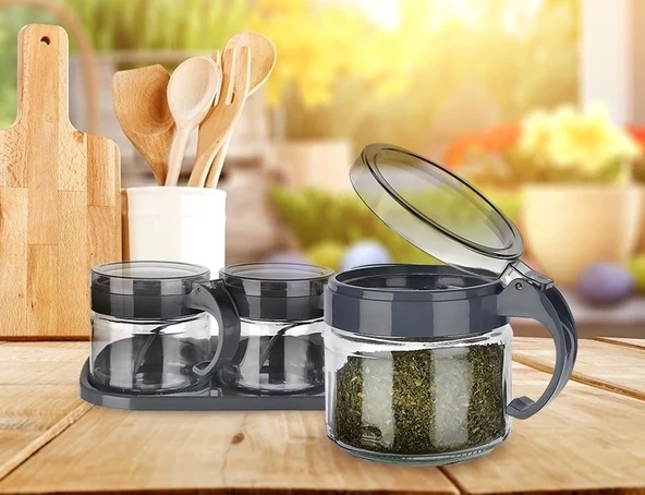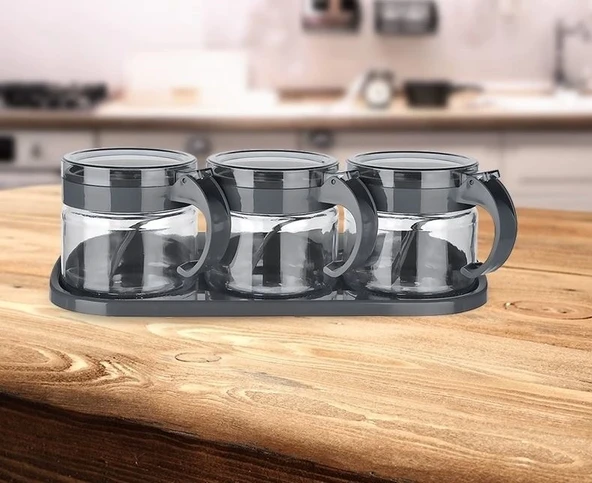 Baharat Seti 3 Adet Kaşıklı Standlı Cam Baharatlık