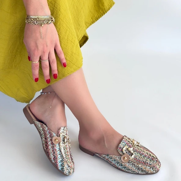 Year Bej Cilt Turuncu Detaylı Turuncu Topuklu Topuklu Ayakkabı