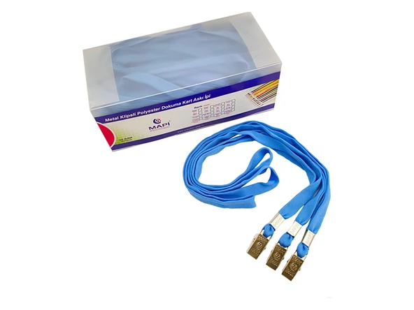 MAPİ METAL KLİPSLİ-POLYESTER DOKUMA KART ASKI İPİ MAVİ 50'Lİ PAKET