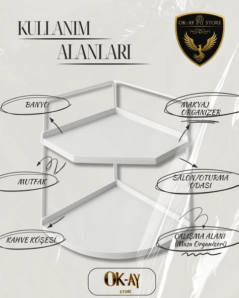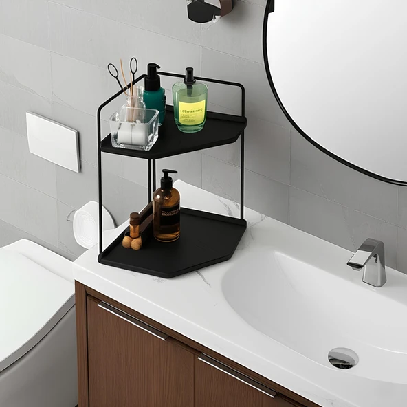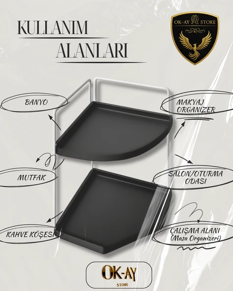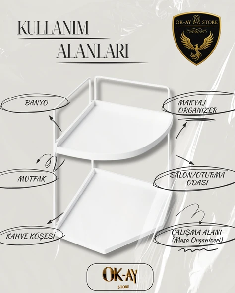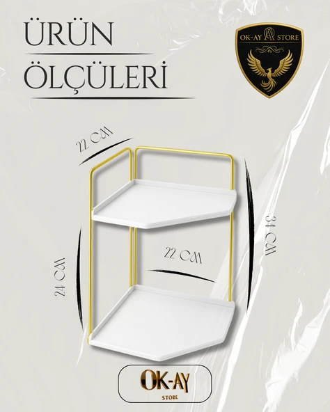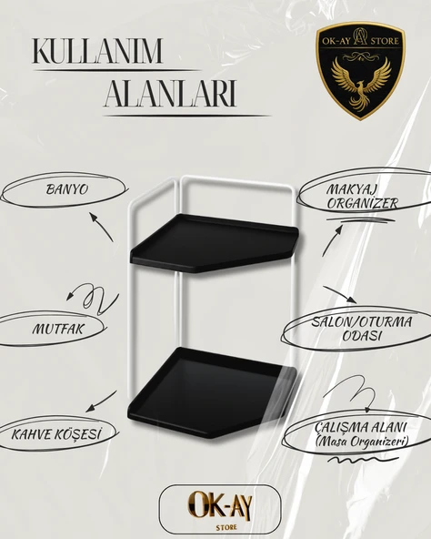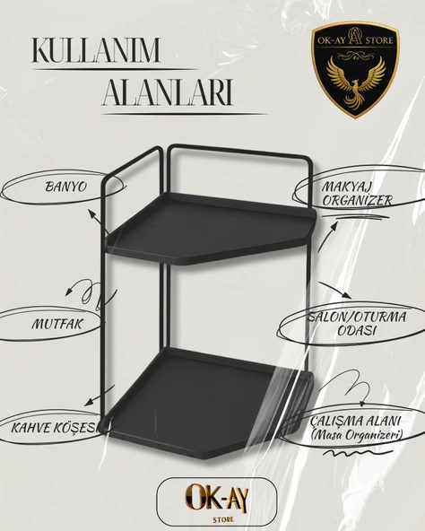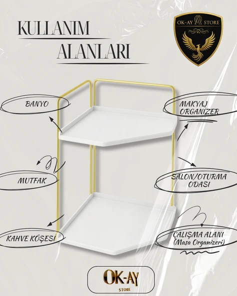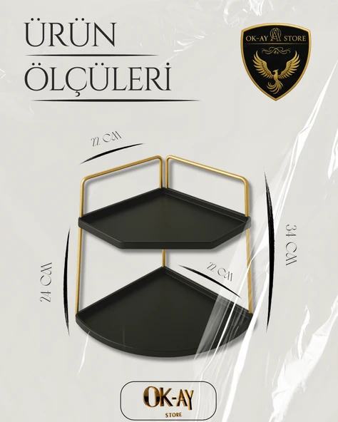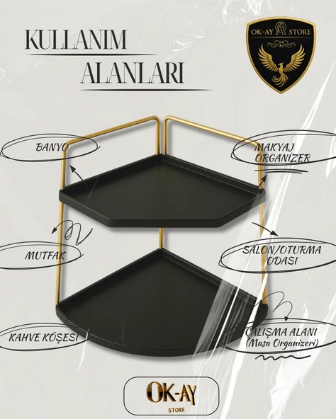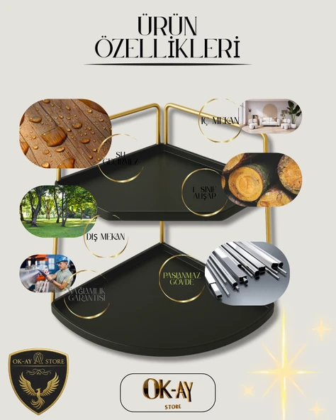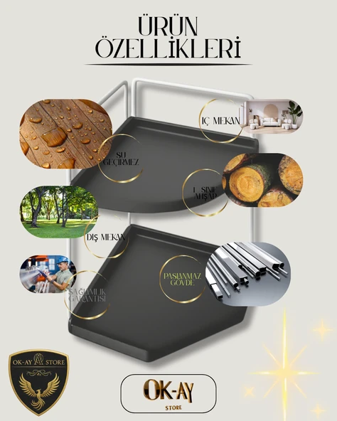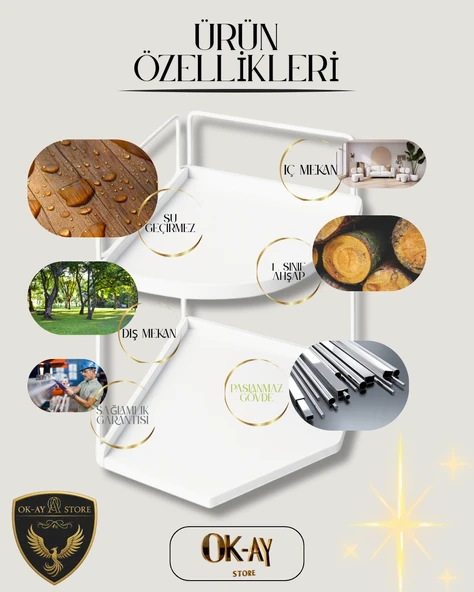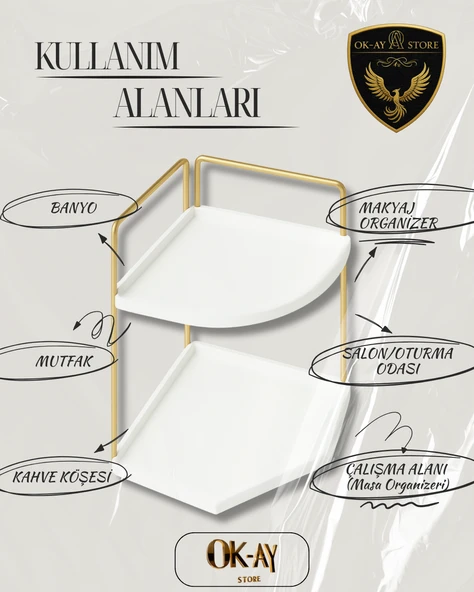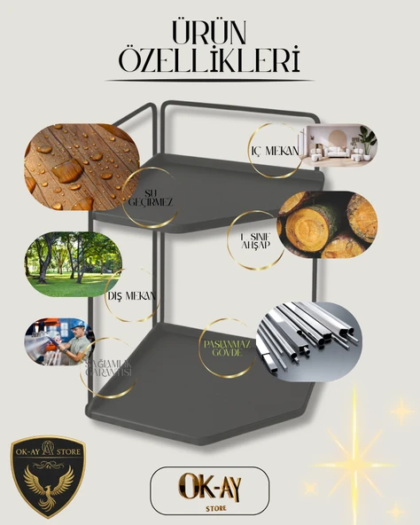 Dekoratif 2 Katlı Raf Çok Amaçlı Organizer Paslanmaz Çelik & Ahşap Stand Salon, Mutfak, Banyo, Çalışma Alanı İçin