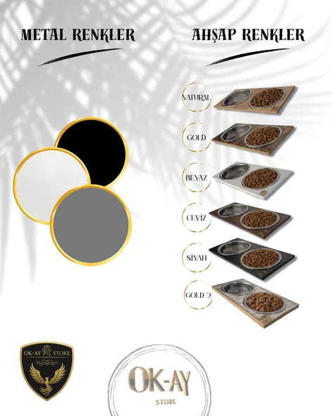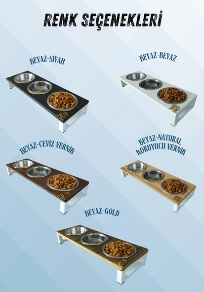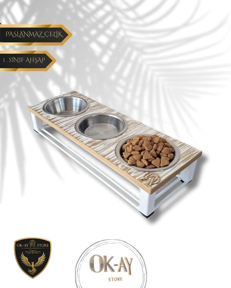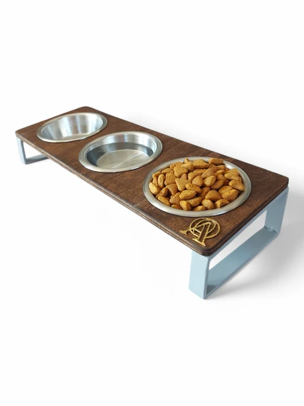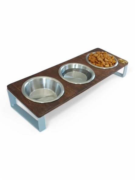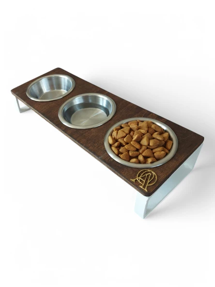 Paslanmaz Çelik Kaseli Kedi Köpek Mama ve Su Kabı Standı Ahşap Gövde, Kaymaz Tabanlı