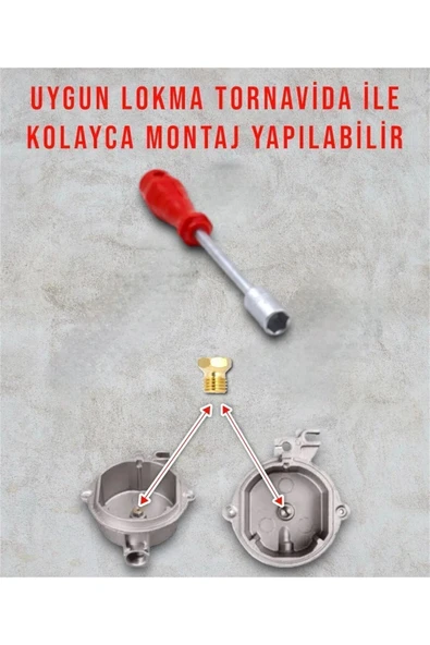 Universal Doğalgaz Ocak Enjektör Meme Montaj Seti - 7'lik Ocak Memesi ve 7'lik Lokma Tornavida