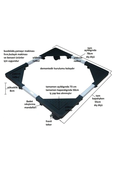 çeksür Tekerlekli Teleskopik Buzdolabı Altlığı Çamaşır Makinesi Altlığı Beyaz Eşya Soba Taşıma Altlığı