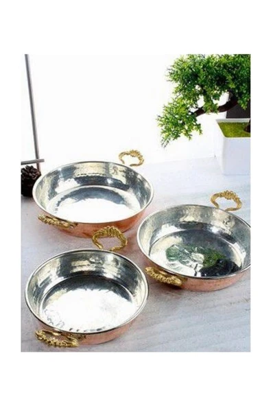 MY ZEY Bakır Sahan Kızartma Yumurta Kahvaltılık tava 3’lü Takım 16 cm