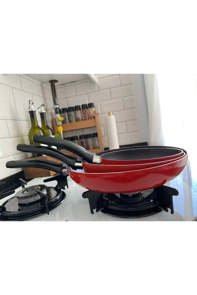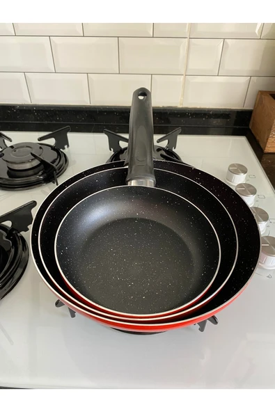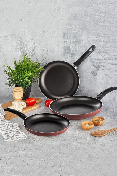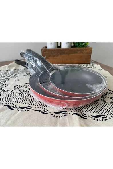 Mehtap 3 Lü Teflon Tava Seti 18-22-26 Cm Kırmızı