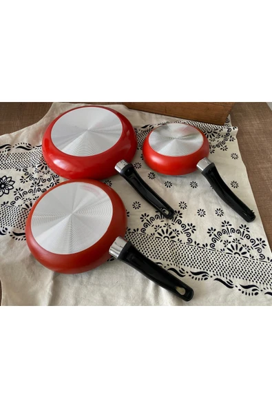 Mehtap Xx-61 12229 Kırmızı 3'lü Tava Seti Kırmızı.