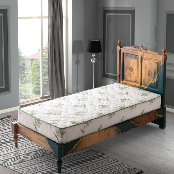 POOLY Ortopedik Tek Kişilik Aloevera Desenli Yaylı Yatak Aloejkr100200