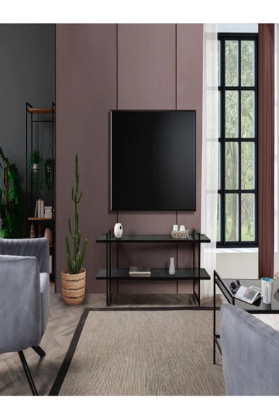 Onurdesign Zuma Metal Siyah Camlı Tv Sehpası
