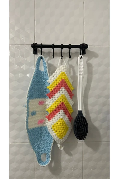 Orvila Orvila Siyah Metal Banyo Ve Mutfak Askısı 5 Kancalı Askı Demiri 24 Cm Çubuk