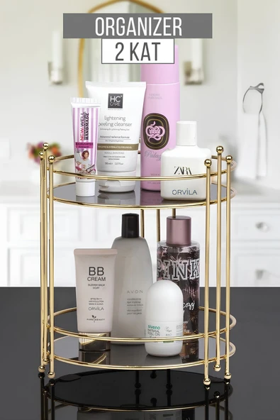 Orvila Orvila Banyo Kozmetik Takı Düzenleyici Çok Amaçlı Organizer 2 Katlı Servis Sunum Tepsisi Ikramlık Gold