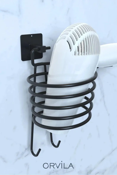 Orvila Orvila Kancalı Fön Makinesi Tutacağı Yapışkanlı Saç Kurutma Makinesi Askısı - Siyah