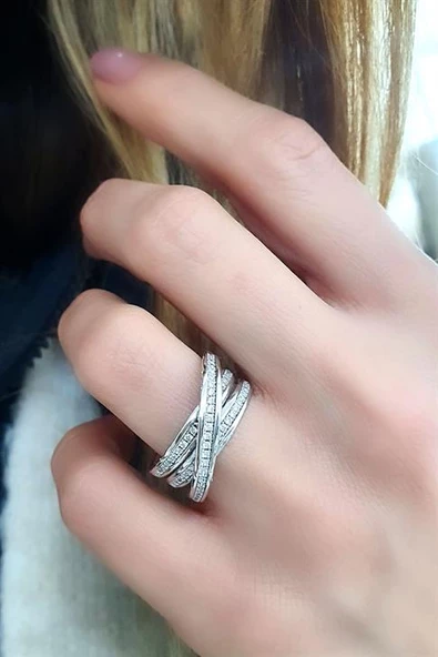 Pırlanta Parlaklığında Zirkon Taşlı 925Ayar Gümüş İtalyan Tasarımı Atlamalı Yüzük