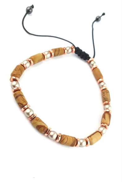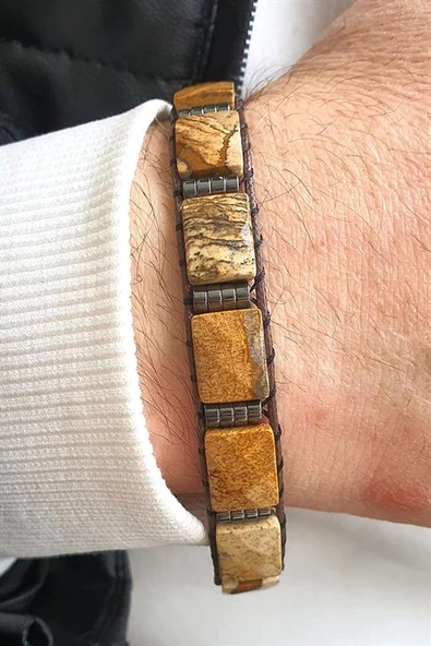 Ağaç Jasper Taşlı Tasarım El İşi Erkek Bileklik