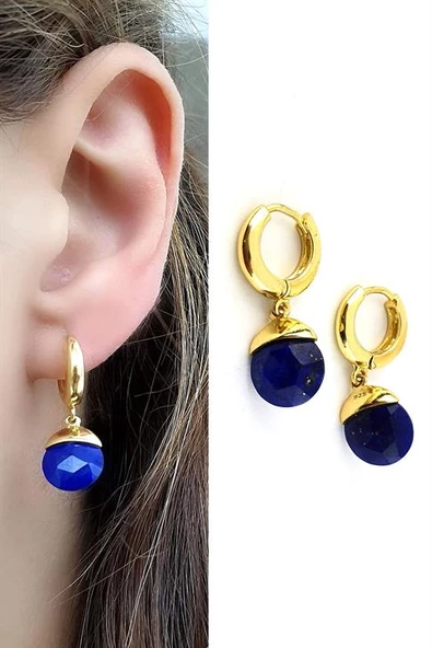 Lapis Lazuli Taşlı 925Ayar Gümüş Üzerine Altın Kaplama Tasarım Doğal Taş Sallantılı Küpe