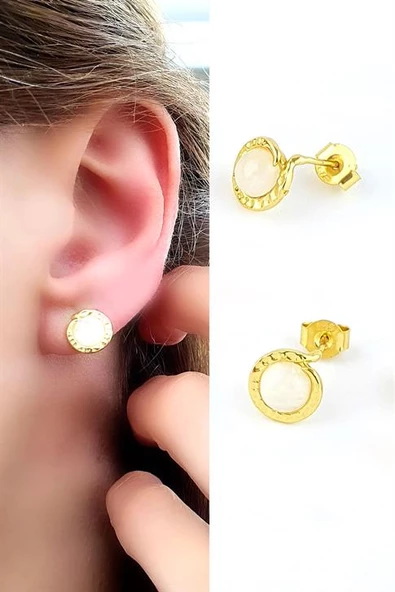 Ay Taşlı 925Ayar Gümüş Üzerine Altın Kaplama Tasarım Doğal Taş Küpe