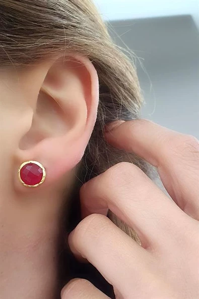 Kök Yakut Taşlı 925Ayar Gümüş Üzerine Altın Kaplama Tasarım Doğal Taş Küpe