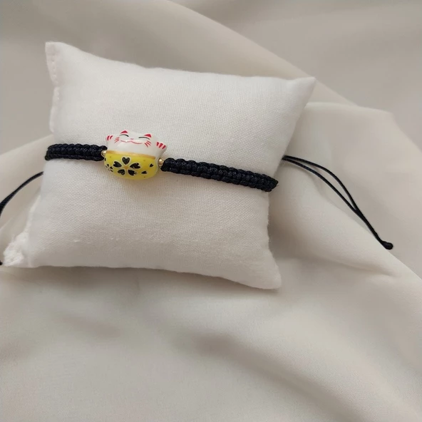 El Yapımı Murano Maneki Neko Şans Kedisi Bileklik