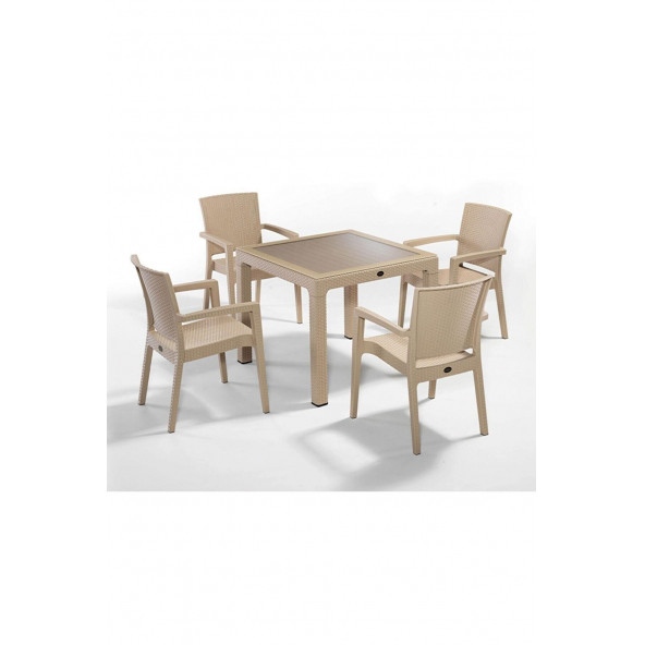 DOGANT 4 Sandalye 90x90 Camlı Masa Rattan Takım Cappicino